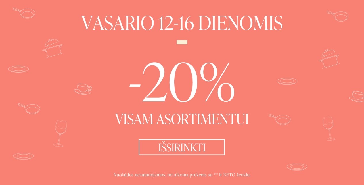 Mes suprantame, kaip svarbu, kad virtuvė būtų patogi ir funkcionali, todėl siūlome tik patikimą, laiko patikrintų prekių ženklų produkciją, pasižyminčią stilingumu, aukšta kokybe bei ilgaamžiškumu. Atstovaujame ARC INTERNATIONAL prancūzų fabrikui, pirmaujančiam krištolo ir stiklo dirbinių gamintojui pasaulyje, ir bendradarbiaujame su daugeliu garsiausių pasaulio gamintojų, taigi mūsų asortimente rasite tik kruopščiai atrinktus, patvarius gaminius.