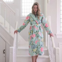Švelnus veliūrinis chalatas Proho Good Evening su gobtuvu, šoninėmis kišenėmis ir ilgu surišamu diržu sukurtas jaukiam poilsiui. Dideli spalvingų gėlių motyvai suteikia chalatui dekoratyvumo ir išraiškingo charakterio. Audinys yra šiltas, tačiau pralaidus orui, todėl puikiai tinka tiek ramiems vakarams po vonios, tiek lėtam rytinės kavos ritualui. Chalatas pasiūtas iš 100 % aukštos kokybės medvilnės kilpinio veliūro (380 g/m²), kuris pasižymi minkštumu, švelniu blizgesiu ir subtiliu prabangos pojūčiu. Medžiaga gerai išlaiko formą ir spalvą net ir po daugelio skalbimų. Prieš naudojimą rekomenduojama chalatą išskalbti, laikantis priežiūros nurodymų etiketėje.