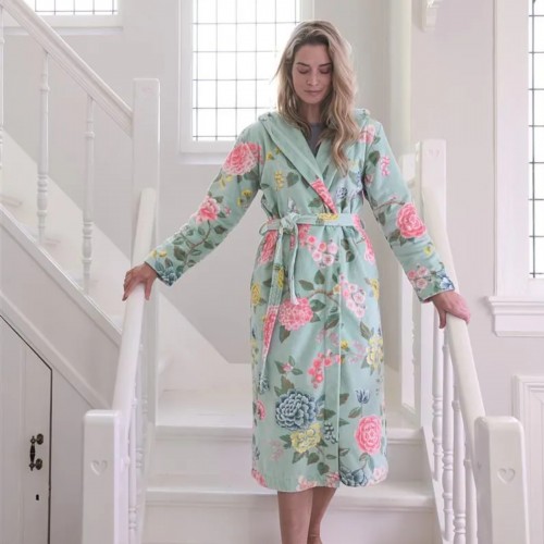 Švelnus veliūrinis chalatas Proho Good Evening su gobtuvu, šoninėmis kišenėmis ir ilgu surišamu diržu sukurtas jaukiam poilsiui. Dideli spalvingų gėlių motyvai suteikia chalatui dekoratyvumo ir išraiškingo charakterio. Audinys yra šiltas, tačiau pralaidus orui, todėl puikiai tinka tiek ramiems vakarams po vonios, tiek lėtam rytinės kavos ritualui. Chalatas pasiūtas iš 100 % aukštos kokybės medvilnės kilpinio veliūro (380 g/m²), kuris pasižymi minkštumu, švelniu blizgesiu ir subtiliu prabangos pojūčiu. Medžiaga gerai išlaiko formą ir spalvą net ir po daugelio skalbimų. Prieš naudojimą rekomenduojama chalatą išskalbti, laikantis priežiūros nurodymų etiketėje.