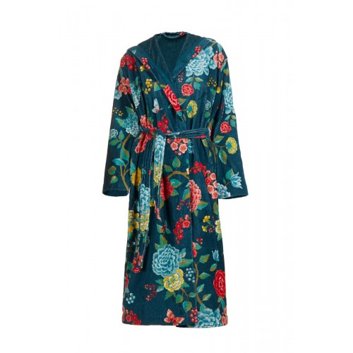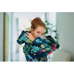 Švelnus veliūrinis chalatas Proho Good Evening su gobtuvu, šoninėmis kišenėmis ir ilgu surišamu diržu sukurtas jaukiam poilsiui. Dideli spalvingų gėlių motyvai suteikia chalatui dekoratyvumo ir išraiškingo charakterio. Audinys yra šiltas, tačiau pralaidus orui, todėl puikiai tinka tiek ramiems vakarams po vonios, tiek lėtam rytinės kavos ritualui. Chalatas pasiūtas iš 100 % aukštos kokybės medvilnės kilpinio veliūro (380 g/m²), kuris pasižymi minkštumu, švelniu blizgesiu ir subtiliu prabangos pojūčiu. Medžiaga gerai išlaiko formą ir spalvą net ir po daugelio skalbimų. Prieš naudojimą rekomenduojama chalatą išskalbti, laikantis priežiūros nurodymų etiketėje.