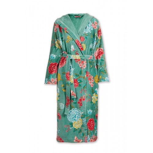 Švelnus veliūrinis chalatas Proho Good Evening su gobtuvu, šoninėmis kišenėmis ir ilgu surišamu diržu sukurtas jaukiam poilsiui. Dideli spalvingų gėlių motyvai suteikia chalatui dekoratyvumo ir išraiškingo charakterio. Audinys yra šiltas, tačiau pralaidus orui, todėl puikiai tinka tiek ramiems vakarams po vonios, tiek lėtam rytinės kavos ritualui. Chalatas pasiūtas iš 100 % aukštos kokybės medvilnės kilpinio veliūro (380 g/m²), kuris pasižymi minkštumu, švelniu blizgesiu ir subtiliu prabangos pojūčiu. Medžiaga gerai išlaiko formą ir spalvą net ir po daugelio skalbimų. Prieš naudojimą rekomenduojama chalatą išskalbti, laikantis priežiūros nurodymų etiketėje.
