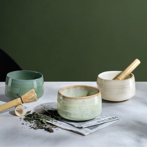 Elegantiškas Asa MORIBANA dubenėlis, įkvėptas japoniškos matcha arbatos ceremonijos estetikos. Švelniai banguota forma ne tik vizualiai išraiškinga, bet ir funkcionali. Ji leidžia patogiai plakti matchą bambukine šluotele, išgaunant tolygią tekstūrą ir sodrią putą. Santūrus dizainas leidžia dubenėliui lengvai įsilieti tiek į modernų, tiek į japoniškos estetikos įkvėptą stalo serviravimą. Pagamintas iš aukštos kokybės keramikos, dubenėlis yra rankų darbo, todėl kiekvienas gaminys pasižymi subtiliu unikalumu.