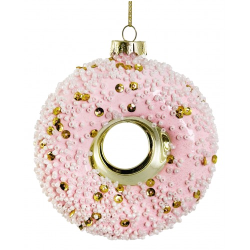 Kalėdinis žaislas spurga, rožinės sp., 10 cm