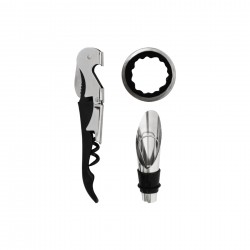 Atraskite Pintinox WINE PLUS 3 dalių vyno rinkinį skirtą elegantiškam vyno atidarymui ir serviravimui. Šį rinkinį sudaro: profesionalus kamščiatraukis, piltuvėlis, lašėjimo žiedas – viską, ko reikia, kad vyno atidarymas būtų sklandus, o pylimas į taurę – tikslus ir tvarkingas. Šis rinkinys gali būti elegantiška dovana vyno mėgėjams.