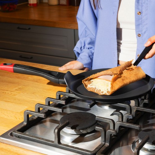 Pyrex OPTIMA + blynų keptuvė sukurta kasdieniam naudojimui, kai svarbus tikslumas ir paprastumas. Platus, lygus paviršius leidžia blynams gražiai pasklisti, o aliuminio korpusas užtikrina tolygų šilumos pasiskirstymą per visą paviršių, todėl blyneliai kepa vienodai ir neprisvyla. Nelimpanti danga be PFAS leidžia kepti blynus naudojant mažiau riebalų, o lygus paviršius padeda juos lengvai ir gražiai apversti vos vienu judesiu. Ergonomiška rankena patogiai gula rankoje ir suteikia stabilumo kiekvieno kepimo metu.