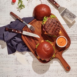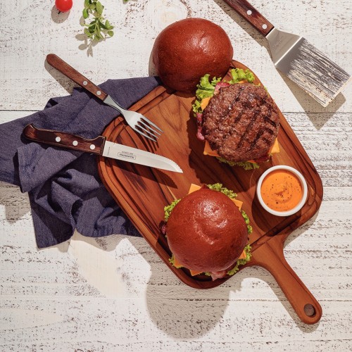 Tramontina stačiakampė pjaustymo lentelė su rankena iš tikmedžio skirta tiems, kurie virtuvėje vertina tvarką, ilgaamžiškumą ir estetiką. 40 × 28 cm dydis patogus kasdieniams darbams, o drėgmei atsparus paviršius užtikrina patikimą naudojimą. Tikmedis yra natūraliai atsparus drėgmei, todėl ši pjaustymo lentelė yra tinkama naudoti tiek sausų, tiek drėgnų ingredientų pjaustymui. Mineralinės alyvos apdaila saugo lentelę ir išryškina natūralų medžio raštą — ji puikiai tinka tiek ruošiant, tiek patiekiant patiekalus.