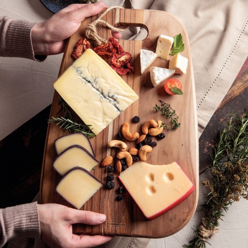 Pirmiausia tai patikima pjaustymo lentelė kasdieniams virtuvės darbams, o tuo pačiu – elegantiška serviravimo lentelė, kuri puikiai tinka užkandžiams, sūriams ar duonai patiekti.Tvirtas FSC sertifikuotas tikmedis atsparus drėgmei, todėl ši pjaustymo lentelė yra tinkama naudoti tiek sausų, tiek drėgnų ingredientų pjaustymui. Tai universali lentelė tiems, kurie vertina tvarką virtuvėje ir gražų pateikimą – vienas daiktas, dvi funkcijos.