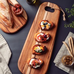 Pirmiausia tai patikima pjaustymo lentelė kasdieniams virtuvės darbams, o tuo pačiu – elegantiška serviravimo lentelė, kuri puikiai tinka užkandžiams, sūriams ar duonai patiekti.Tvirtas FSC sertifikuotas tikmedis atsparus drėgmei, todėl ši pjaustymo lentelė yra tinkama naudoti tiek sausų, tiek drėgnų ingredientų pjaustymui. Tai universali lentelė tiems, kurie vertina tvarką virtuvėje ir gražų pateikimą – vienas daiktas, dvi funkcijos.