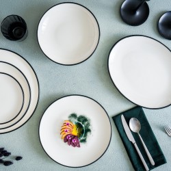 Spalvoti krašteliai subtiliai papildo elegantišką porceliano formas. Dailus, minimalistinis dizainas dera prie beveik kiekvieno patiekalo, suteikdamas serviruotei rafinuotumo. Bonna LINEA BLACK yra santūri ir kartu elegantiška indų kolekcija, kuri yra tarsi drobė, ant kurios virtuvės meistrai gali išpildyti savo kūrybines vizijas. Šią kolekciją galima derinti su Bonna ALBUFERA serija.