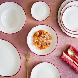 Spalvoti krašteliai subtiliai papildo elegantišką porceliano formas. Dailus, minimalistinis dizainas dera prie beveik kiekvieno patiekalo, suteikdamas serviruotei rafinuotumo. Bonna LINEA BURGUNDY yra santūri ir kartu elegantiška indų kolekcija, kuri yra tarsi drobė, ant kurios virtuvės meistrai gali išpildyti savo kūrybines vizijas. Šią kolekciją galima derinti su Bonna ALBUFERA serija.