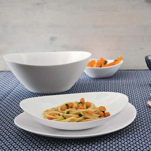 Bormioli Rocco PROMETEO 23 cm ovali sriubos lėkštė – tvirta ir elegantiška stiklinė lėkštė, skirta kasdieniam ir šventiniam stalo serviravimui. Balta spalva ir ovali forma suteikia stalui tvarkingą bei lengvą įspūdį, lengvai derantį prie įvairių stalo serviruočių.