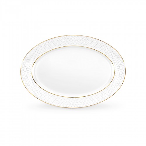 Wilmax Diamond Gold ovali lėkštė – tai ne tik indas, bet ir estetikos išraiška. Balto porceliano pagrindas subtiliai dera su grakščiomis auksinėmis linijomis, kurios suteikia lėkštei išskirtinumo ir neperspausto puošnumo. Ovali forma, plokščias kraštelis ir subtiliai žvilgančios auksinės linijos ne tik papuoš stalą, bet ir išryškins kiekvieno patiekalo grožį. Ši ovali lėkštė puikiai tinka tiems, kurie vertina rafinuotą serviravimą, stiliaus nuoseklumą ir nori savo kasdienybėje ar šventėje įnešti elegantiškos, harmoningos estetikos.