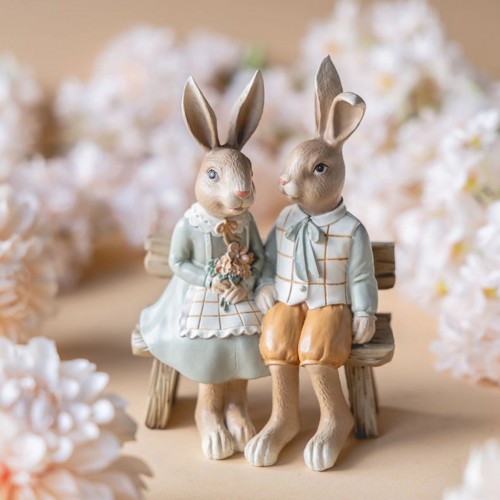 Dekoracija A Lot Rabbit Couple Bench, 1 vnt., 19 cm