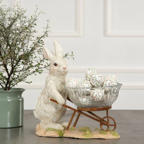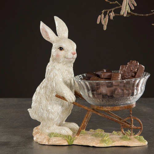 Dekoracija Rabbit with glass bowl Jūsų namuose sukurs šmaikščią ir šventišką Velykinę atmosferą.