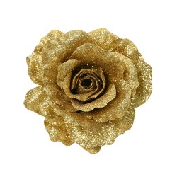 Kalėdinė dekoracija prisegama rožė, auksinės sp., 12 cm