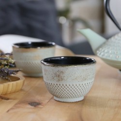 Klasikiniai Japoniško stiliaus ketaus puodeliai – tai mažas ritualas kasdienybėje. Puodelių rinkinys sukurtas tiems, kurie vertina lėtą arbatos akimirką ir santūrų japoniškos estetikos charakterį. Ketaus sienelės tolygiai įšyla ir ilgai sulaiko šilumą, todėl arbata išlieka maloniai karšta, o emaliuotas vidus leidžia atsiskleisti tikrajam jos skoniui. Puodeliai puikiai dera su ketaus arbatinukais. Neplauti indaplovėje ir nenaudoti aštrių valiklių. Išplovus nusausinti.