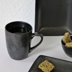 MANHATTAN serija – tai išskirtinio dizaino kolekcija, įkvėpta senovinės metalo kalimo technikos. Ji primena laikus, kai metalas buvo formuojamas rankomis, o kiekvienas paviršius turėjo savitą tekstūrą. Puodelio paviršius atrodo tarsi kaltas metalas – juodame fone subtiliai atsiskleidžia sidabro ir vario atspalviai. Iš pirmo žvilgsnio net sunku patikėti, kad tai keramika.