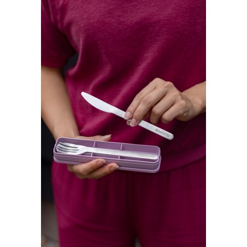 Stilingas ir minimalistinis Brabantia stalo įrankių rinkinys su įrankių dėklu, kada galėtumėte saugiai neštis įrankius kartu su savimi.