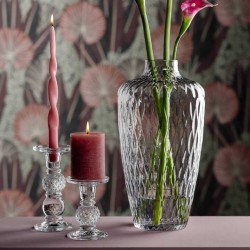 Pagaminta iš aukštos kokybės stiklo, pasižymi tvirta forma – platesnė bazė suteikia stabilumo, o siaurėjantis kaklelis elegantiškai laiko tiek vieną gėlės šakelę, tiek nedidelę puokštę.