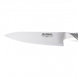 Peilis pagamintas iš patentuoto „CROMOVA 18“ nerūdijančio plieno, išsiskiriančiu ašmenų aštrumu bei atsparumu rūdims, dėmėms ir korozijai. Smailus 15° kampu pakreiptas pjovimo kraštas užtikrina tikslų pjūvį ir ilgai išliekantį aštrumą. Peilis grūdintas ledu pagal „Rockwell C56-58“ standartą, suteikia ašmenims tvirtumo bei ilgaamžiškumo. Kitos unikalios savybės – lygūs kontūrai ir vientisa konstrukcija, neleidžianti kauptis maistui ir nešvarumams, todėl užtikrinamas maksimalus saugumas ir higiena. Subalansuota rankena užtikrina patogų valdymą ir stabilumą net ilgai pjaustant maistą. Daugybę tarptautinių apdovanojimų pelnęs GLOBAL G-2 – tai patikimas pasirinkimas ieškantiems preciziško pjovimo ir nepriekaištingos kokybės.