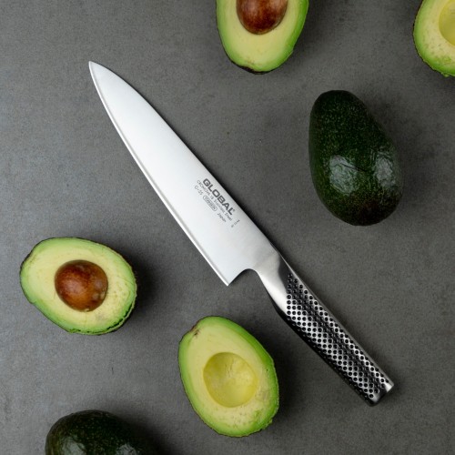 Virėjo peilis Global G-55 – universalus virtuvės peilis, skirtas smulkinimui, pjaustymui, kapojimui ir kitiems kasdieniams maisto paruošimo darbams.