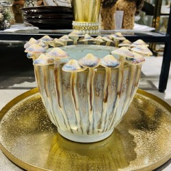 Ši Coach House Mushroom žvakidė – tikras meno kūrinys, kupinas charakterio ir šilumos. Pagaminta iš glazūruoto porceliano, ji primena miško įkvėptą kompoziciją. Apvalios formos indą puošia aplinkui iškilių grybų eilė, tarsi nedidelis rudens vainikas.